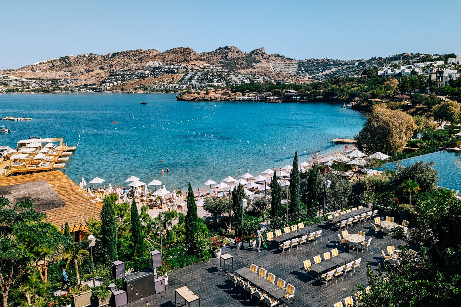 The Bodrum Edition is one of the peninsula’s crown jewels and a relative newcomer to the area. It has a private beach, which is a precious commodity in such a popular area. It’s also designed to give you plenty of picture-perfect panoramas from the comfort of the resort if you’re not in a beachy mood; there are a rooftop bar and a large outdoor pool surrounded by cabanas, both of which offer incomparable views of the bay.