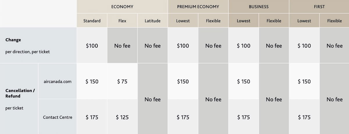 - Air Canada Aeroplan charges up to 100 CAD for changes, and up to 150 CAD for cancellations