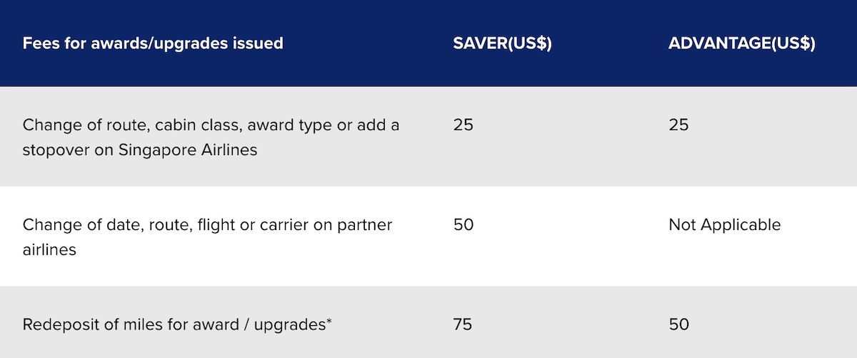 - Singapore KrisFlyer charges $0-50 for changes, and $50-75 for cancellations