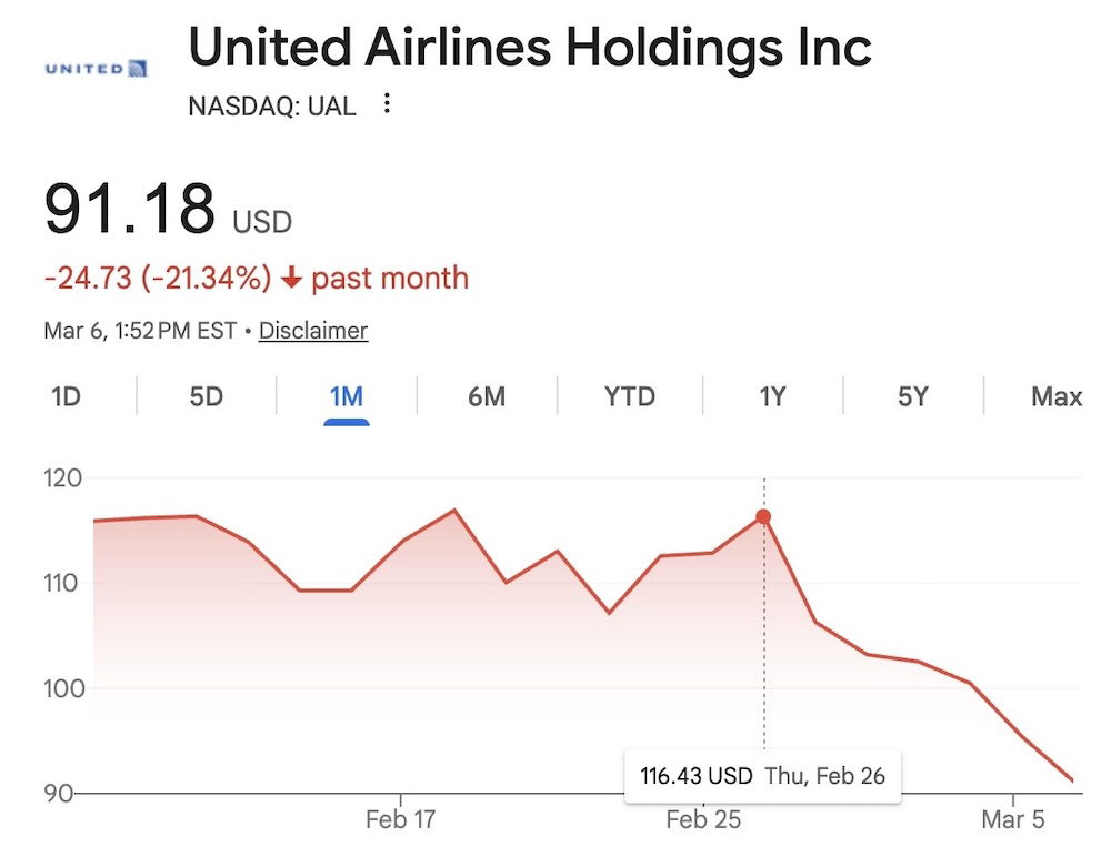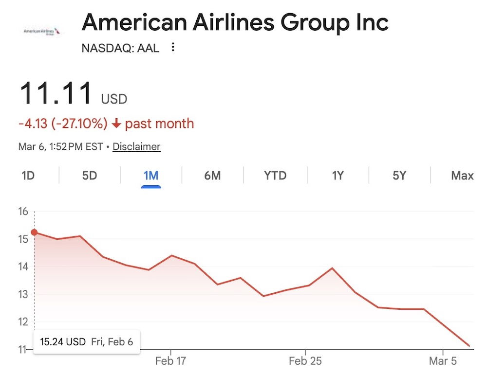 As you’d expect, airline stocks have really struggled in recent weeks. For example, over the past month, American’s stock is down over 27%, while United’s stock is down over 21%. That’s not ideal.