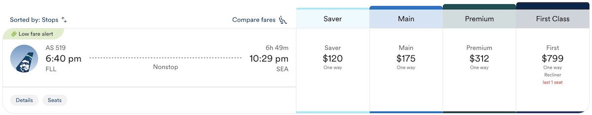 Meanwhile I’d be much more likely to spend $55 to avoid a Saver fare on a nearly seven hour flight from Fort Lauderdale to Seattle. Heck, the difference in points earning as a non-elite member is roughly 2,000 points, and based on my valuation of Atmos Rewards points, that’s like $30 worth of miles right there. If you value things similarly, you’re only paying $25ish to buy your way out of a Saver fare.