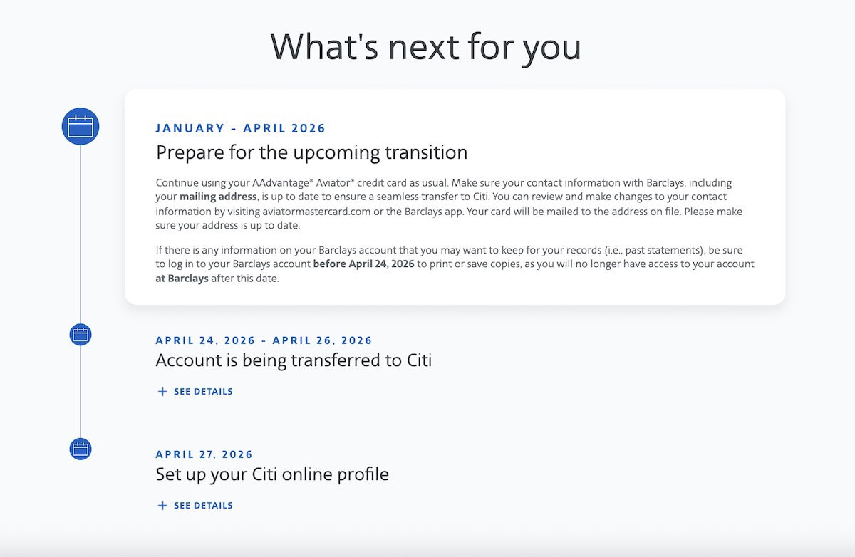 We’ve known that the Barclays portfolio would eventually transition to Citi, and we now know exactly when that will happen — on April 24, 2026, existing Barclays AAdvantage cards will be transitioned to Citi.
