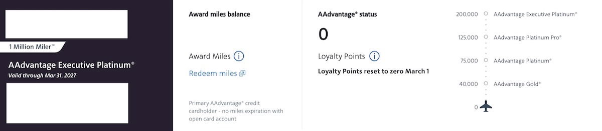You can always easily see your AAdvantage Loyalty Points total by logging into your AAdvantage account, either through aa.com or the American Airlines app. There’s a simple graphic that shows your status toward qualifying for the various Loyalty Points thresholds.
