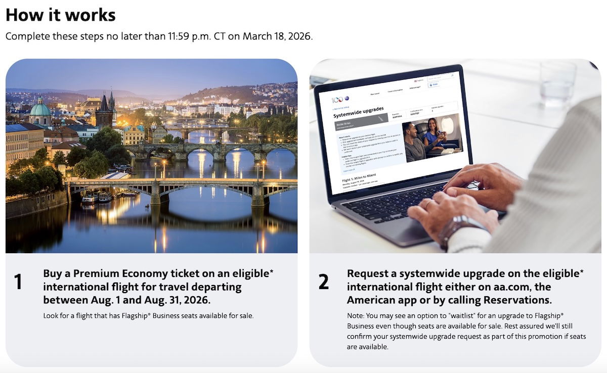 American is offering a very limited time promotion when redeeming systemwide upgrades, which is available to those who complete all steps by 11:59PM CT on Wednesday, March 18, 2026.