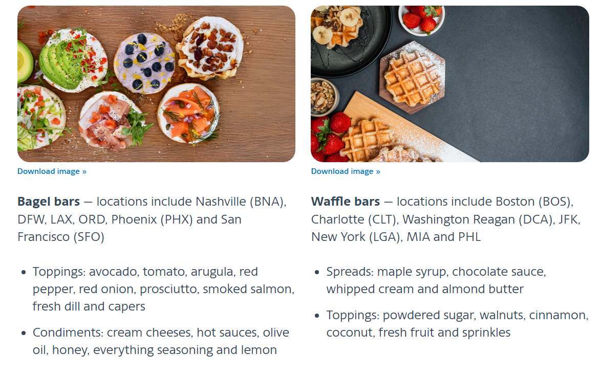I’m actually most interested in the changes in Admirals Clubs. It seems like they’re taking the existing avocado toast option and substituting bagels for the toast, more or less. Still, depending on the execution this could be excellent. I bet the tomatoes and onions will be sliced too thinly!