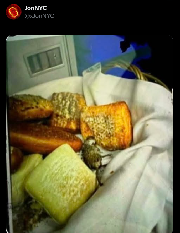 All of this is reportedly because of hygiene issues with their caterer in London, dnata. A photo is circulating of mice in a bag of bread that flight attendants discovered when they placed it in a basket in the galley, as shared by JonNYC.