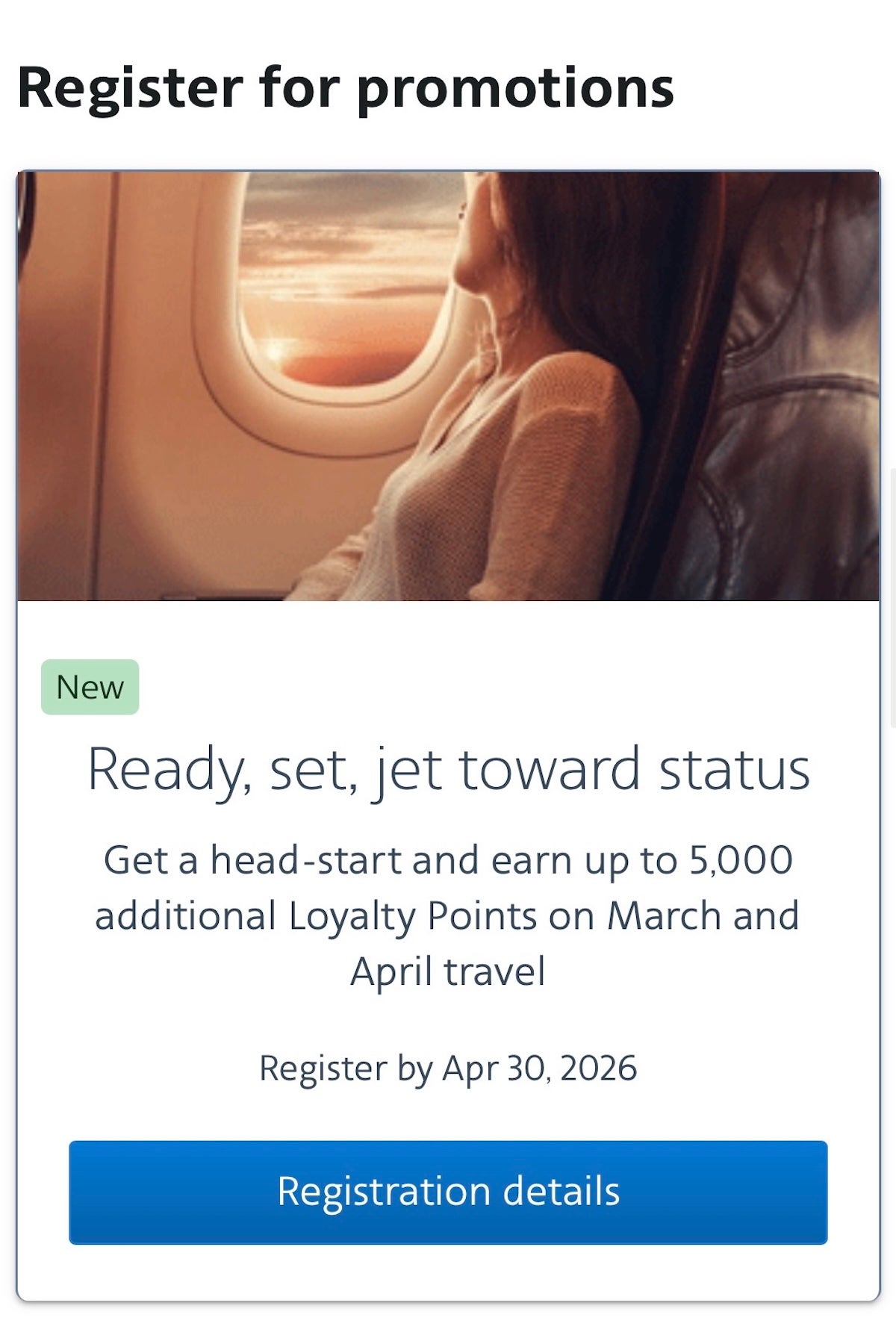 This promotion covers flights through April 30, and you have to register.