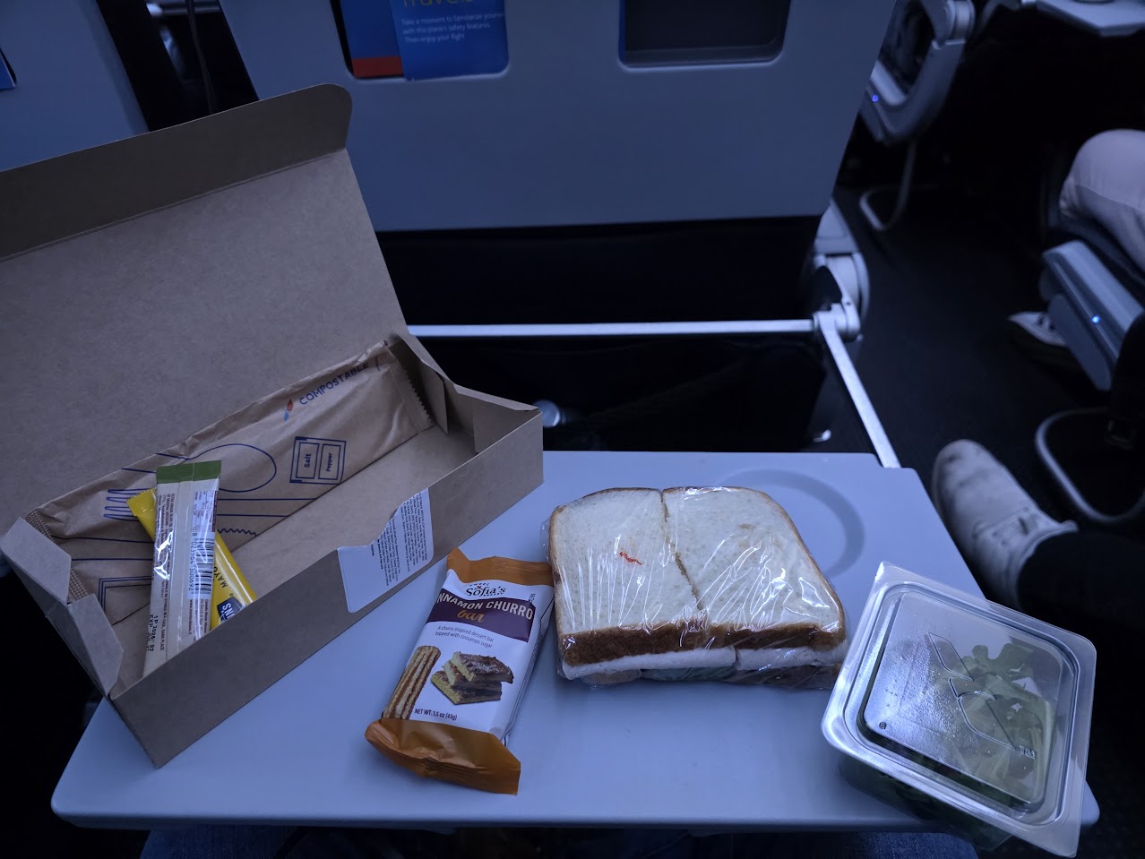 turkey wrap to be the sandwich option for buy on board on my American Airlines New York JFK to Austin flight last week. Oddly, it was a turkey sandwich with a chunk of brie cheese in the middle, like off the cheese plate. It wasn’t bad, exactly. Just odd.