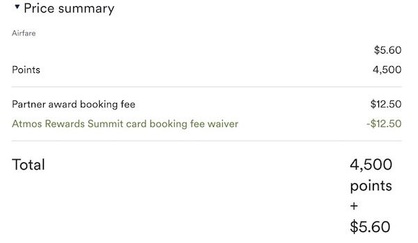 Fortunately this is an area where the the Atmos Rewards Summit Card can help — as a benefit, cardmembers receive a waiver of the partner redemption booking fee. Here’s how this works: