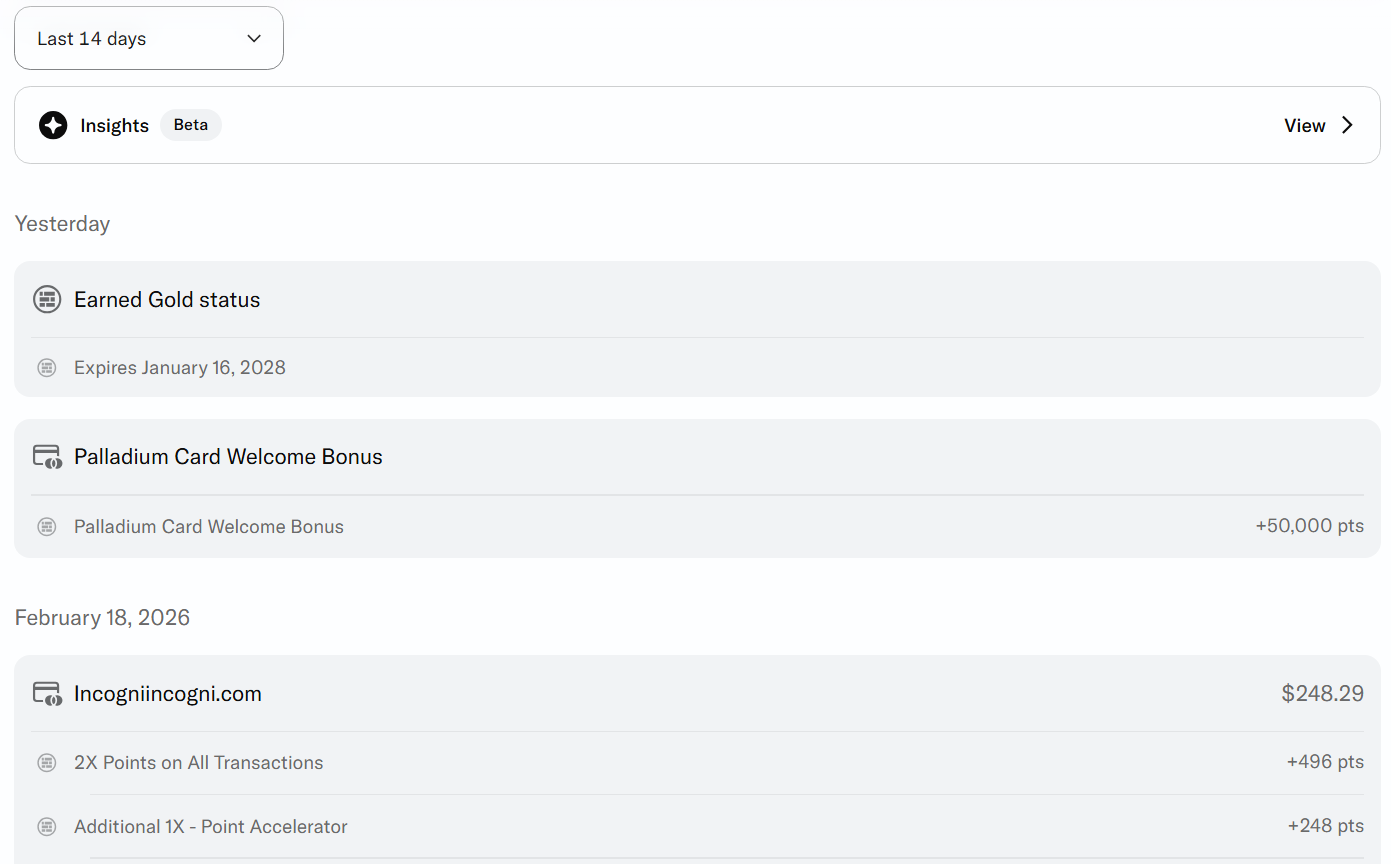 I’m a Bilt Platinum member, but Gold status that’s included in the card offer ‘posted’ once I achieved the card’s initial bonus as well. That actually turns out to be useful because the status is valid for the rest of the current year and the full next year. My current Platinum status (earned last year) is valid for this year only. So if I somehow don’t earn it again, I have a minimum of Gold in 2027.