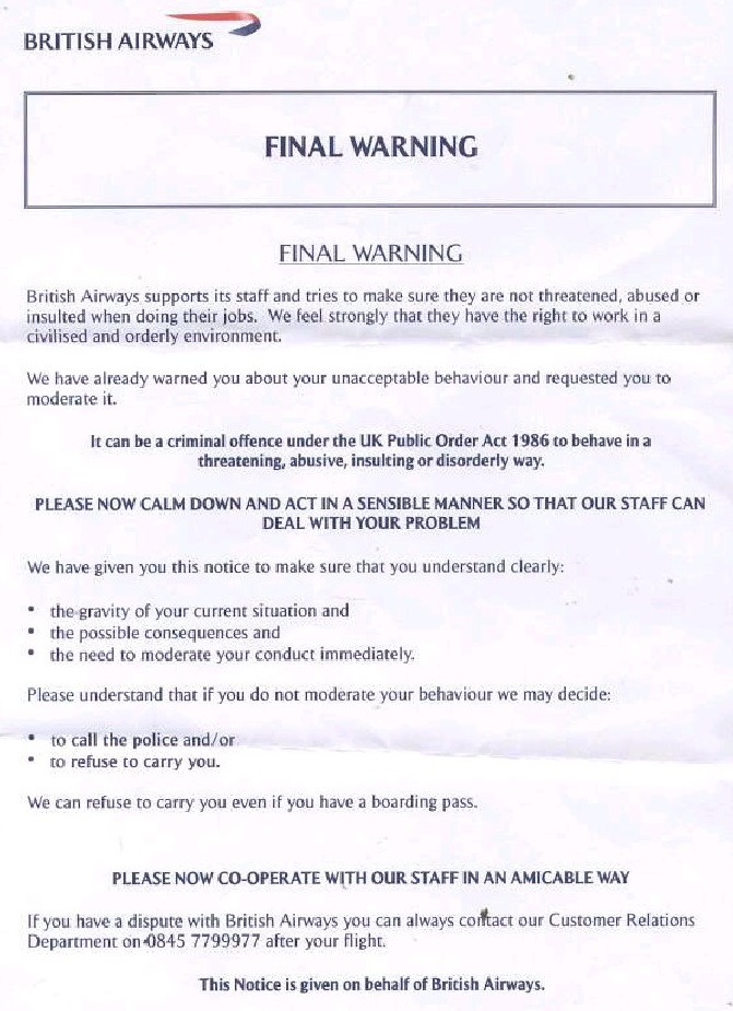 Surely the passenger in this case deserves a British Airways Yellow Card.