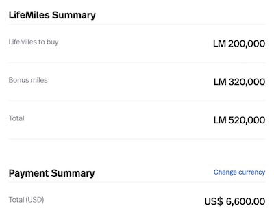Ordinarily you can buy avianca lifemiles for 3.3 cents each, before any discounts or bonuses. That means that if you purchased 200,000 lifemiles (pre-bonus) with a 160% bonus, you’d receive a total of 520,000 lifemiles for $6,600, which is a cost of 1.27 cents per mile.