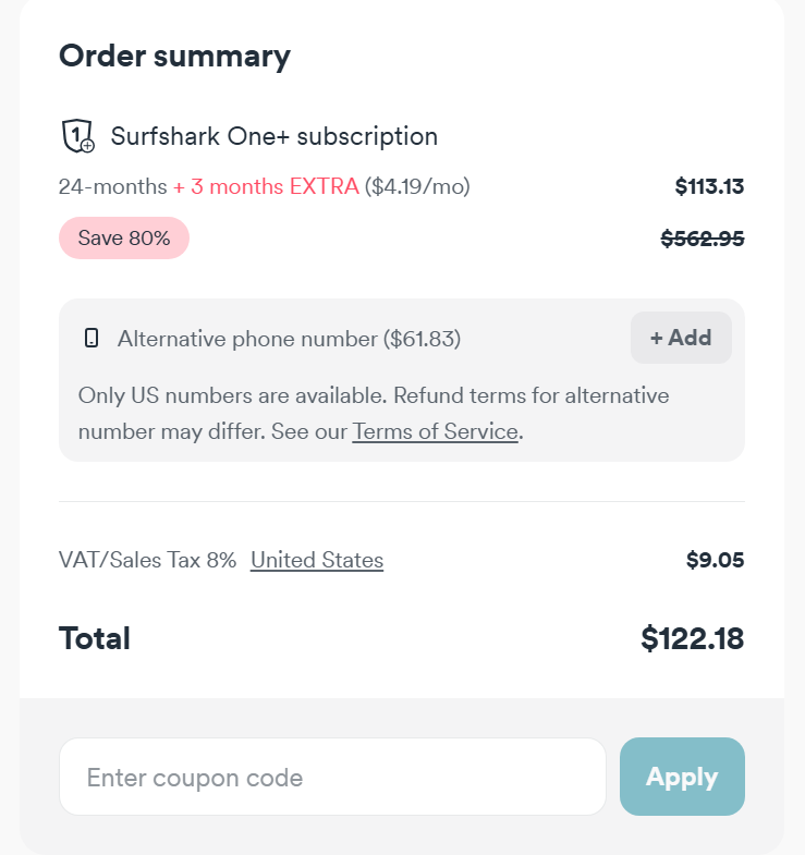 Buy the two year ‘Surfshark One+’ plan for $113.13. The 100% rebate is only for new Surfshark customers and only on their first purchase.