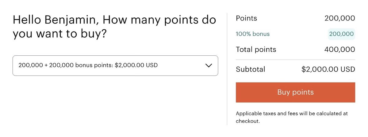 Ordinarily you can buy IHG One Rewards points for as little as one cent each (the pricing isn’t linear), before any discounts or bonuses. With that in mind, if you were eligible for a 100% bonus and purchased 200,000 IHG One Rewards points pre-bonus, you’d receive a total of 400,000 points at a cost of $2,000, which is a rate of 0.5 cents per IHG point.