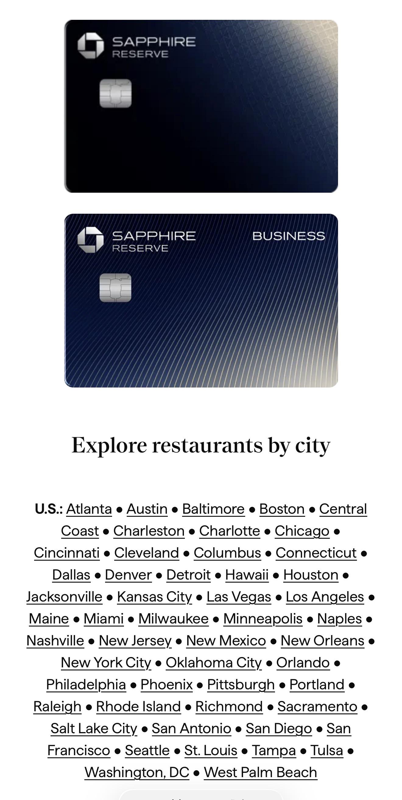 This list is smaller than Amex’s dining credit, valid at all Resy restaurants. However I noticed that the list of cities where the dining credit was available had grown quite a lot, so I asked Chase where this stood and they confirmed the growth in both new markets and “100 new restaurants.”