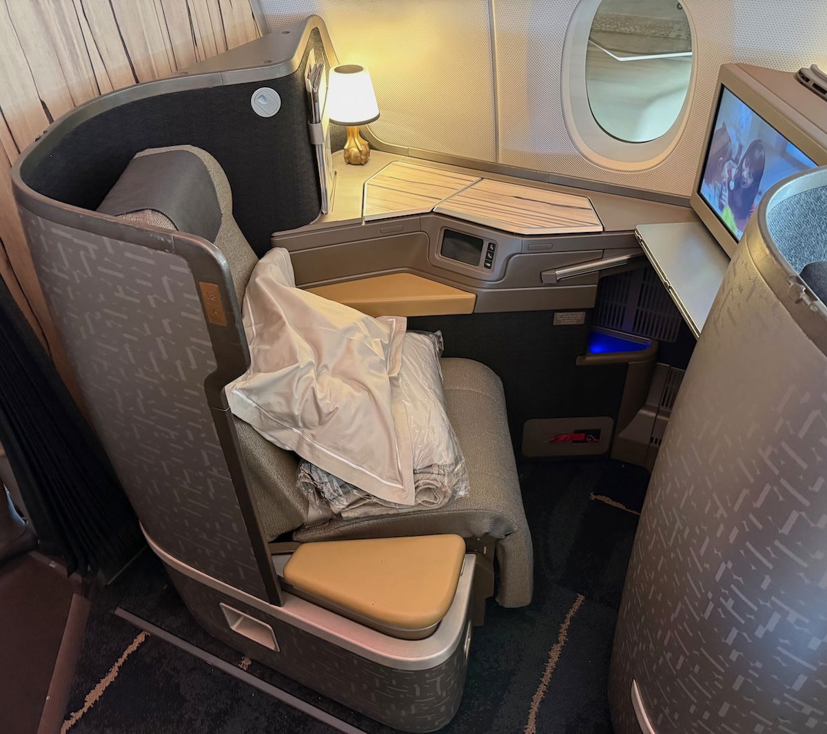Admittedly this product is now around a decade old, so it doesn’t have all the modern bells and whistles. There are no doors, bluetooth audio, USB-C charging, etc. However, the airline does plan to introduce new A350 cabins in the coming years.