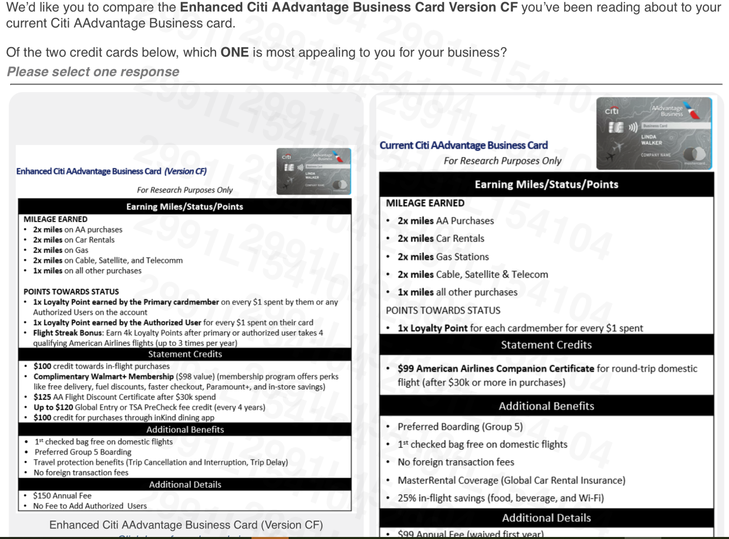Here’s a product being surveyed by Citibank as a refresh of their American AAdvantage small business card. This may not be the final card they come up with, although I’d note that when they surveyed a refresh of their premium AAdvantage Executive card the survey I wrote about was very close to what was ultimately offered.