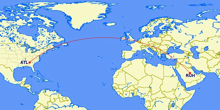 DL318 Atlanta to Riyadh departing 10:30PM arriving 7:35PM (+1 day)