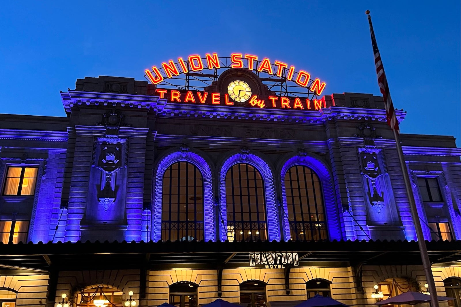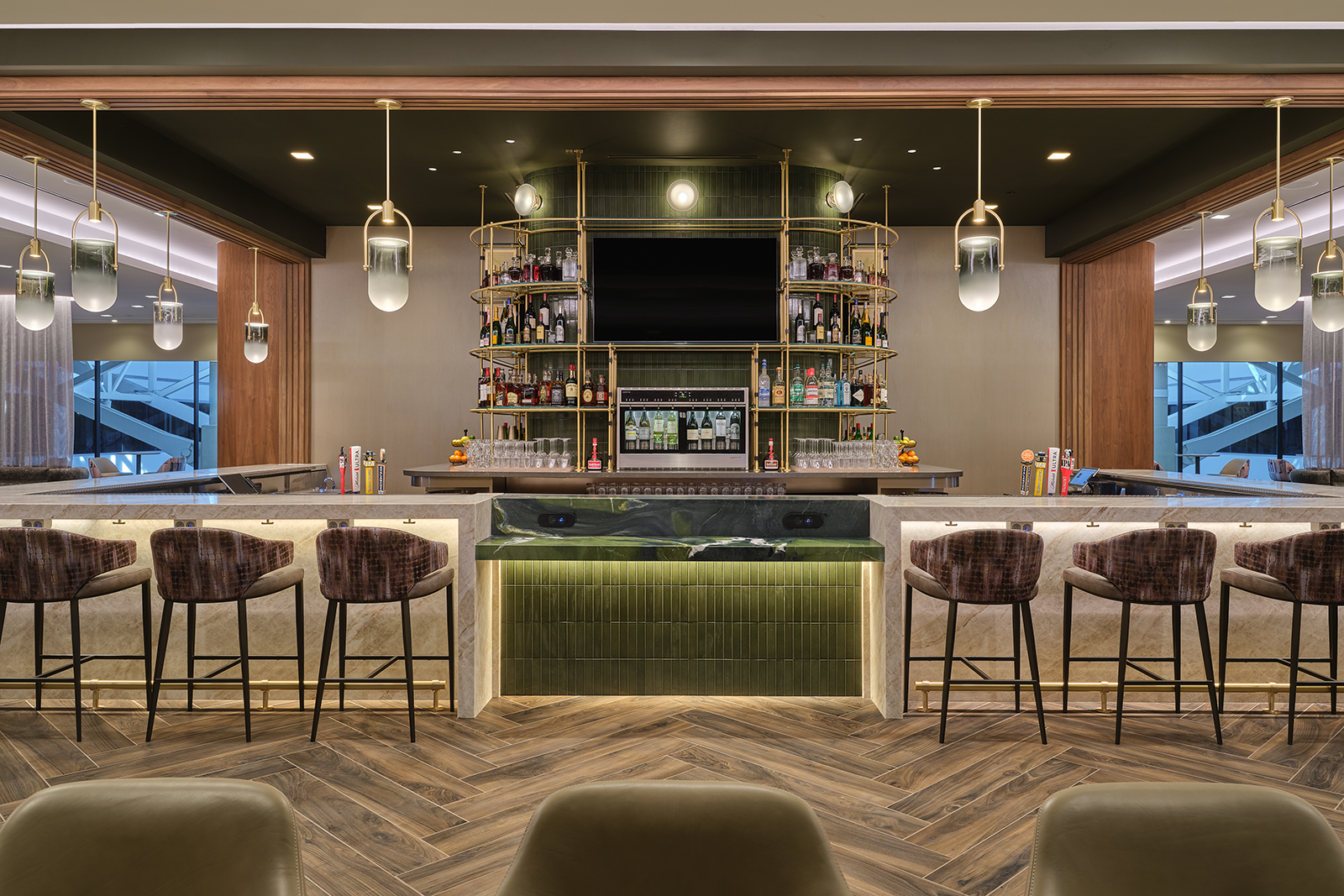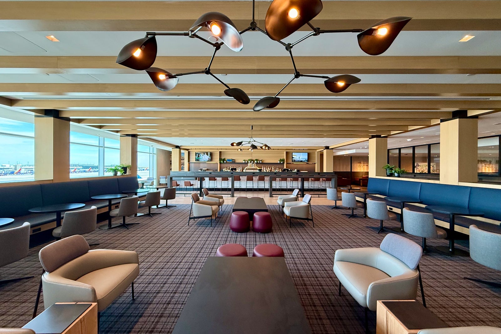 The new Denver Sky Club features a brand-new bar with an elaborate design inspired by the city’s iconic Union Station (which you can easily connect to from the airport via the A Line).