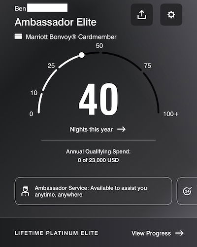 • If you want to then go for Bonvoy Titanium status (which requires 75 elite nights), you’re not any closer to earning it, since you’re not getting the 50 elite nights usually associated with Platinum status