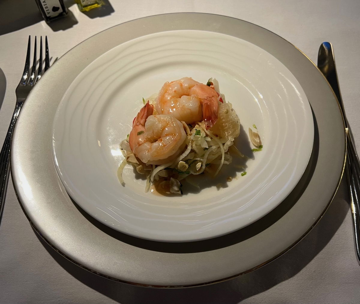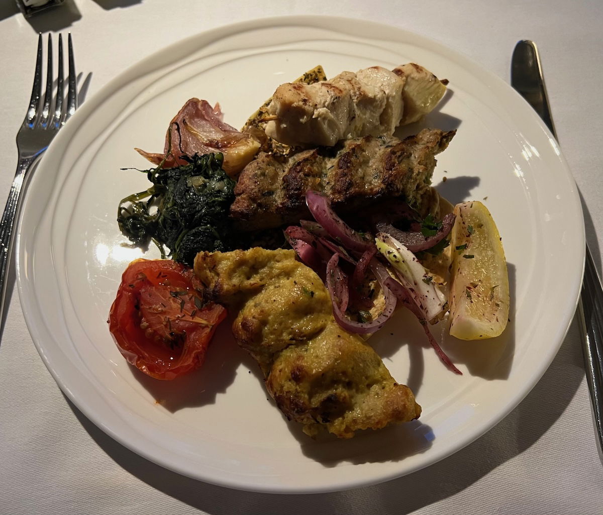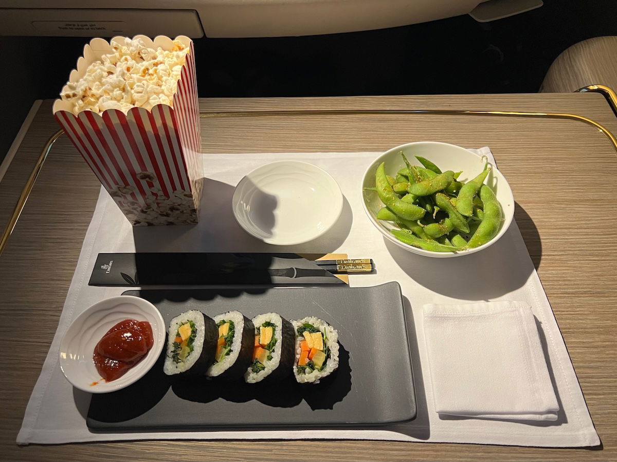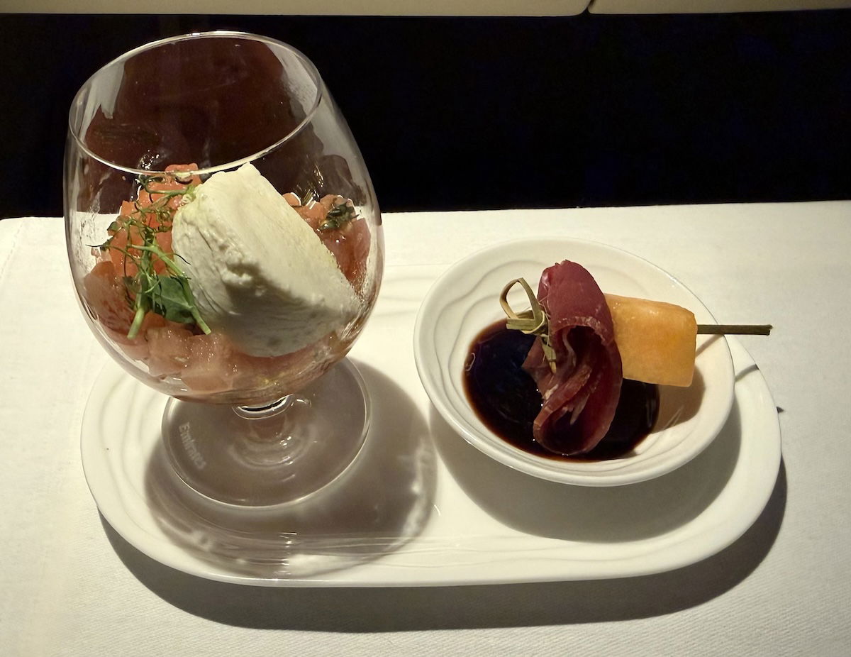 I’d say the individual dishes are largely in line with what you’d expect to find in an excellent business class product — like, I don’t think they’re materially better than in Qatar Airways business class, for example. And that’s fair enough, because not everything has to have foie gras and truffles. Dishes are generally nicely plated, but nothing that’s going to blow you away.