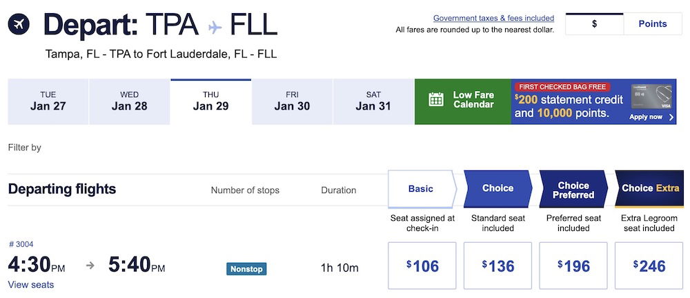 With Southwest Airlines’ assigned and premium seating now live, what’s pricing like? To take a look, I pulled up a flight from Tampa (TPA) to Fort Lauderdale (FLL), which is one of the carrier’s shorter routes.