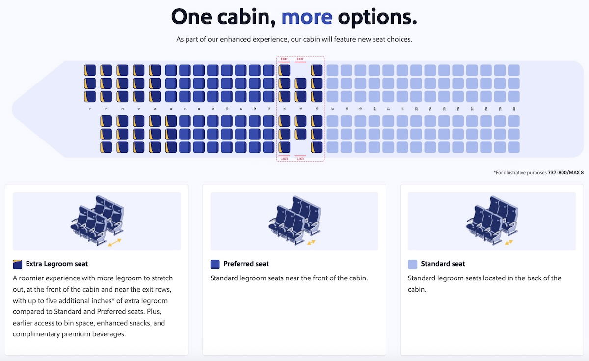 With the airline having now moved to a new seating model, all seats are being assigned, and roughly one-third of seats feature extra legroom. How have the layouts changed, as Southwest has reconfigured jets? There are three seating types: