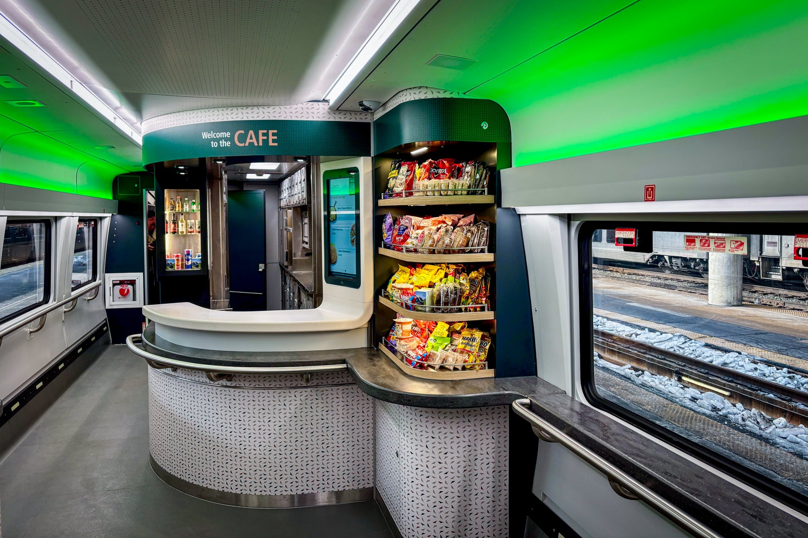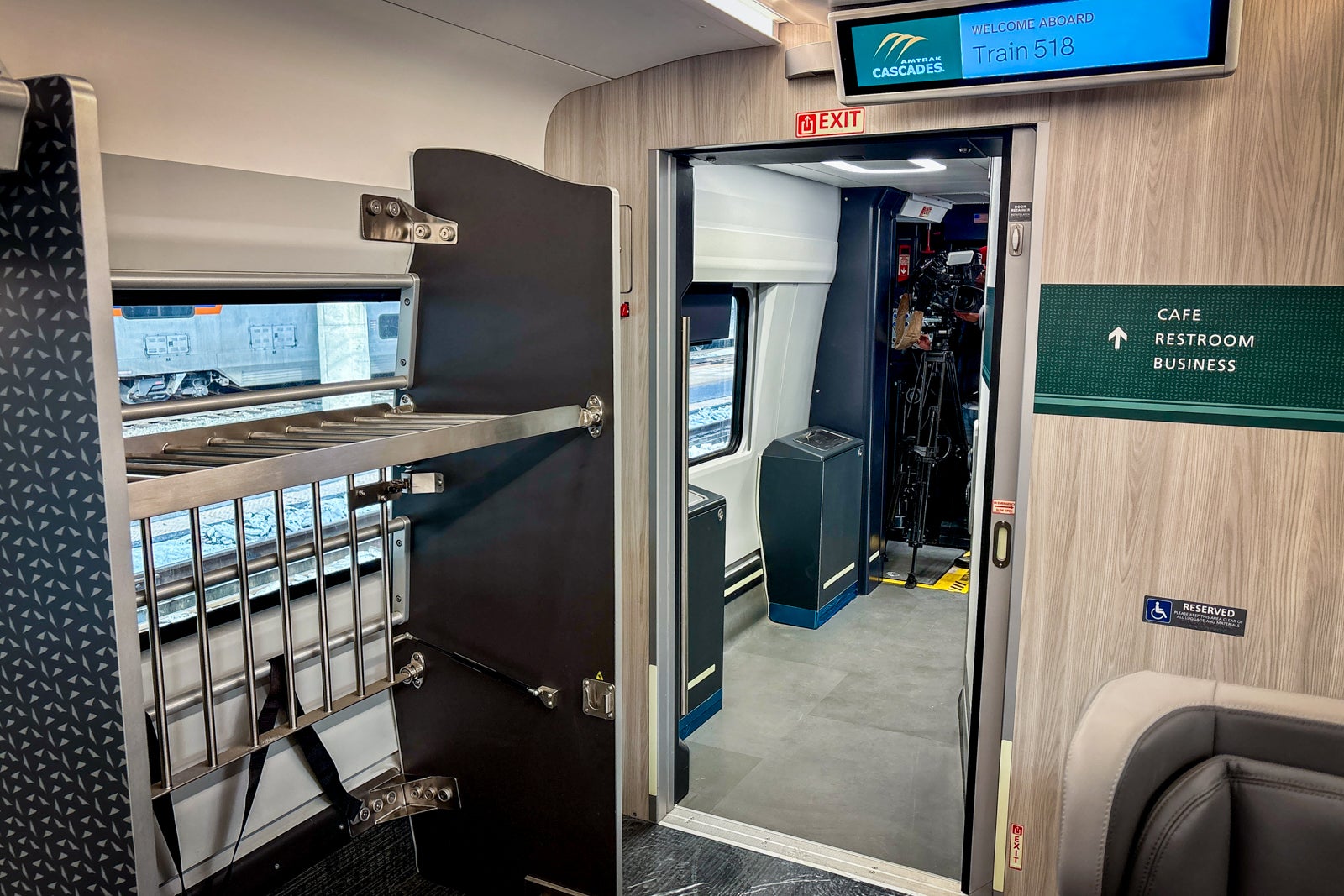 Each Cascades Airo train has one business-class car with seats in Amtrak’s standard 1-2 configuration. Again, there are a mix of stand-alone seats as well as ones with tables throughout the carriage.
