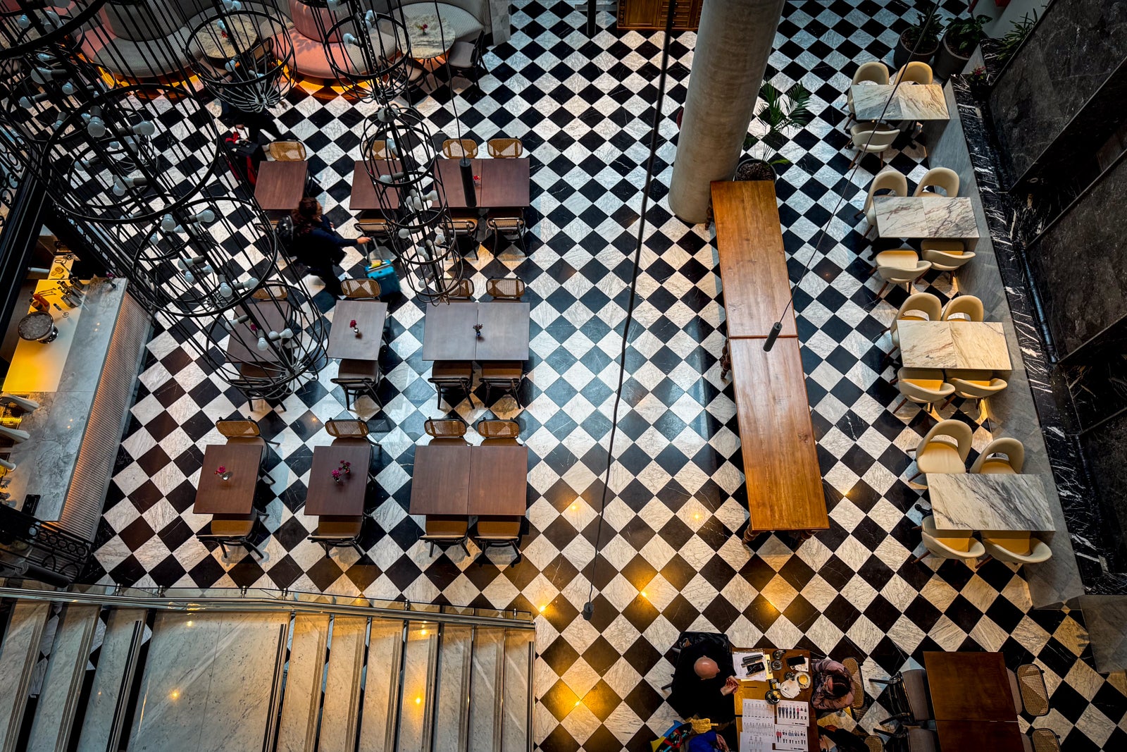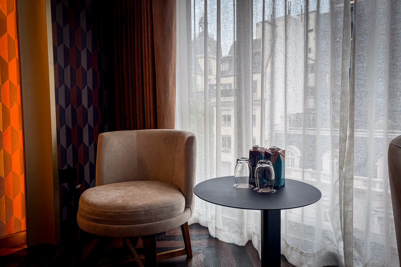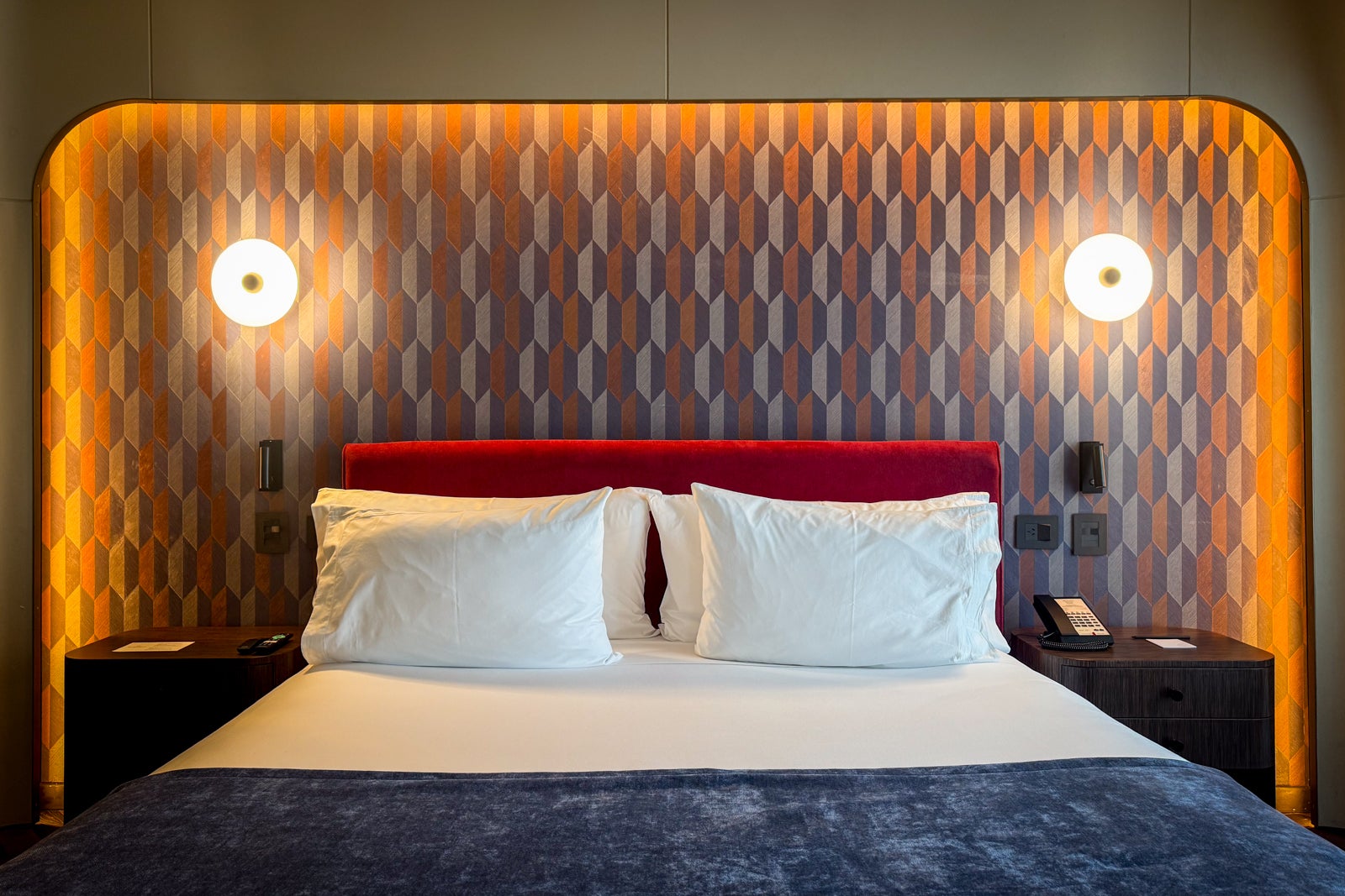 Look out for other midcentury modern-inspired touches like circular sconce lights by the beds and Scandinavian-chic chairs and tables by panoramic windows overlooking the surrounding streets.