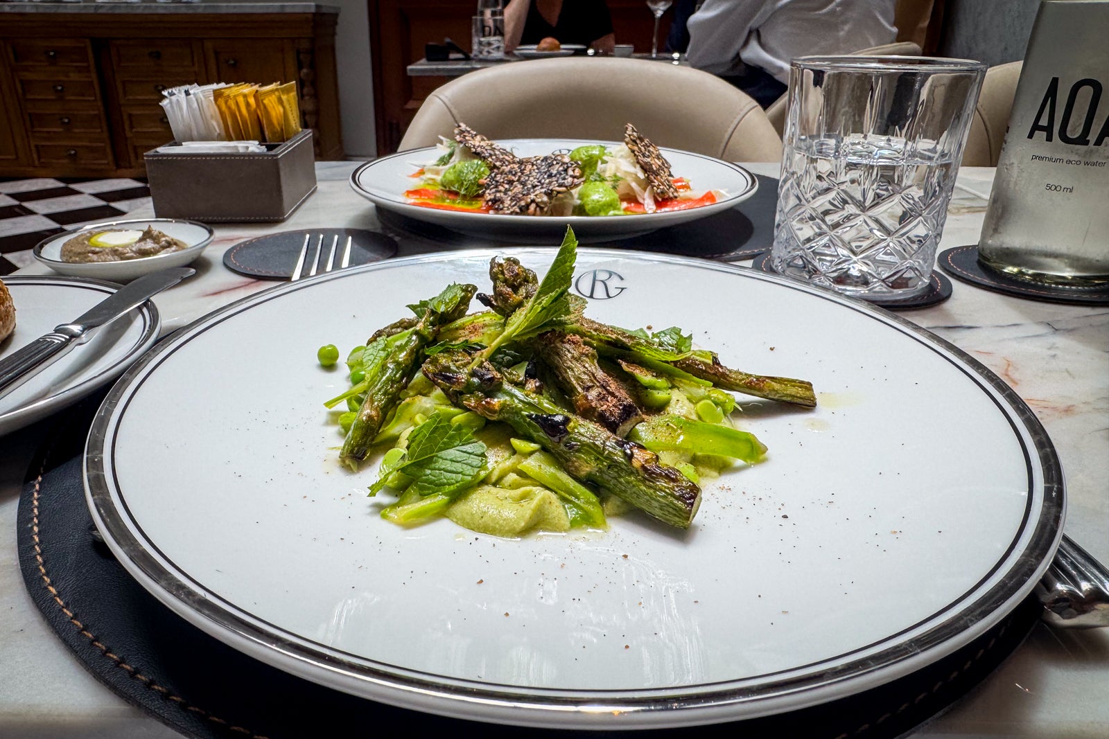 The cured Patagonian trout with herb bavarois and fennel ($13) was savory and fresh, as was the asparagus with vinaigrette with charred lemon, creamy peas, mint and baharat sauce ($10). I also spied a neighboring table enjoying a massive Angus rib-eye steak with chimichurri ($28) that looked positively incredible.