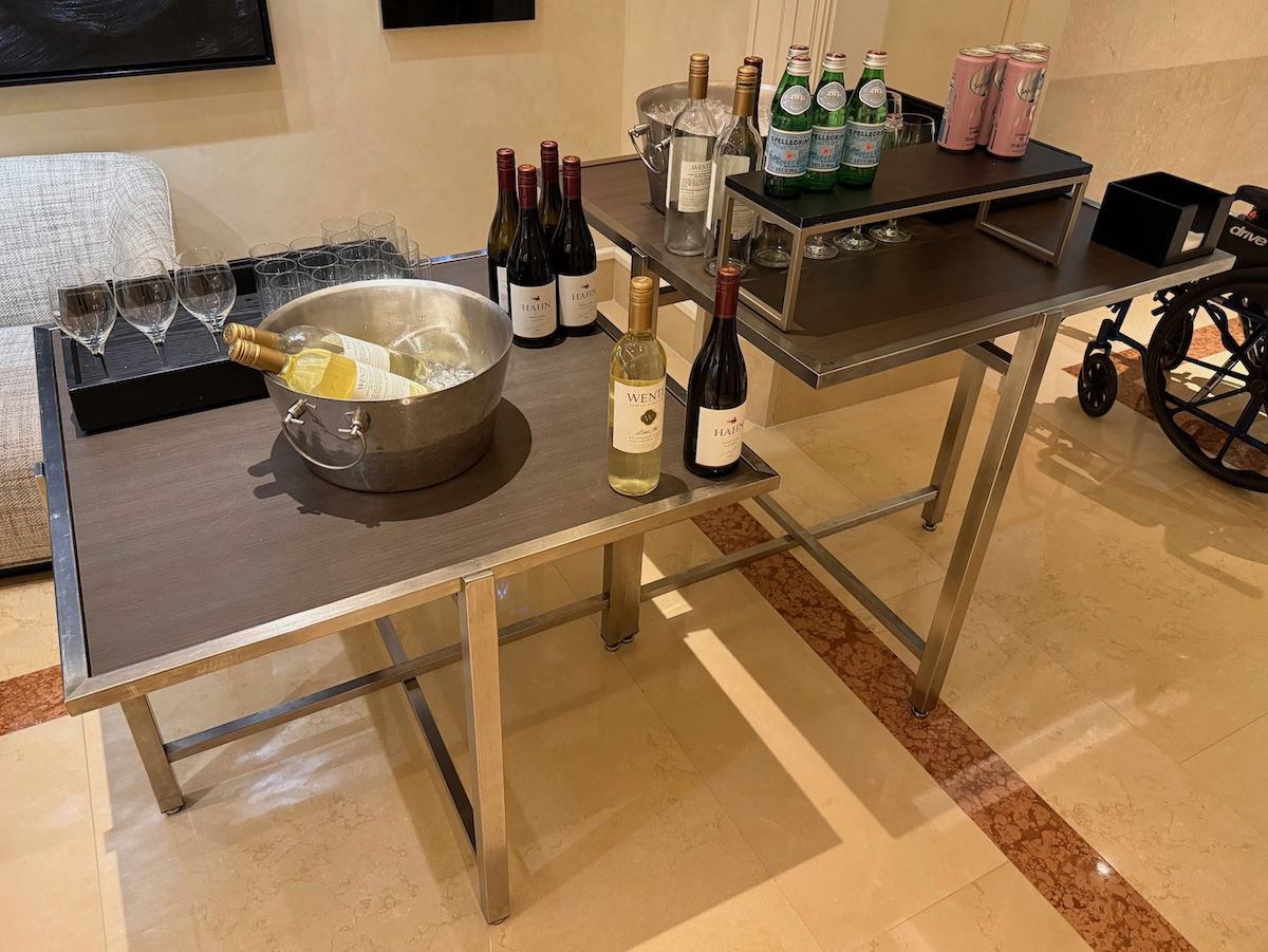 …and even a free basic happy hour for guests a few hours per week, with complimentary red and white wine.