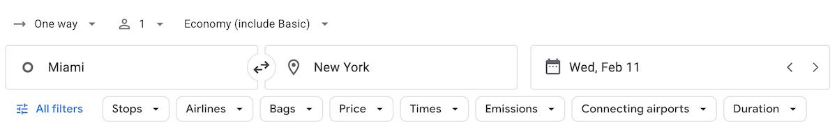 When you go to Google Flights, it doesn’t look that different than most online travel agencies. You can enter your origin, destination, travel date, whether you’re traveling one-way or roundtrip, the number of passengers, and the class of service you want to travel in.