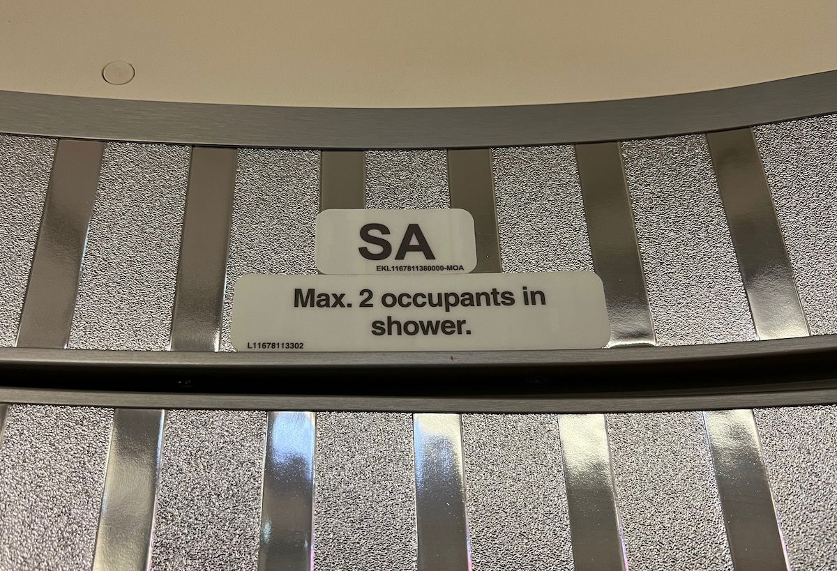 Funny enough, there’s a sign above the shower suite indicating that the maximum occupancy of the Emirates A380 shower is two. The intent there is in case a second passenger requires “assistance.” Of course I suppose it depends how you define assistance. 😉