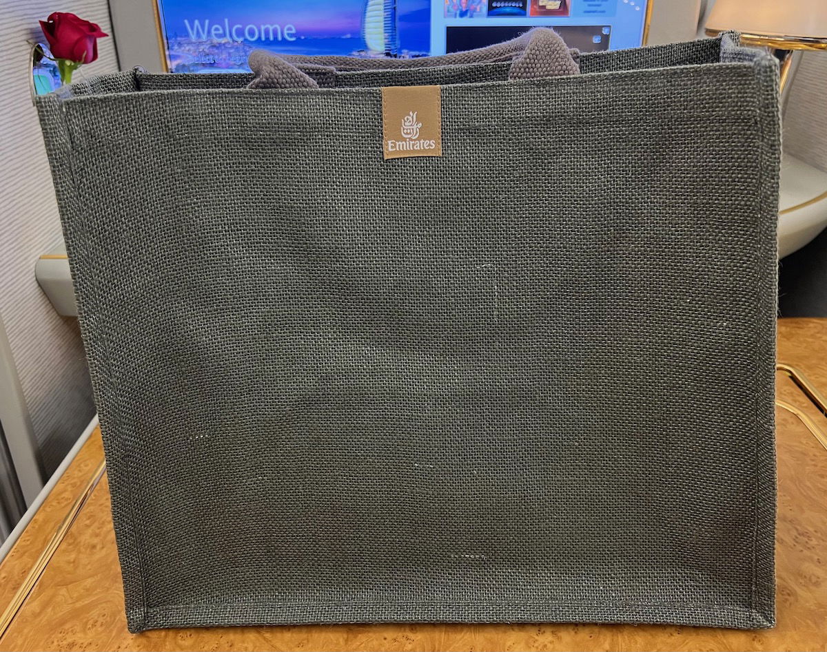 First class passengers are also given a tote bag, which is intended so that you can transport stuff to and from the shower suite. Emirates really thinks of everything.