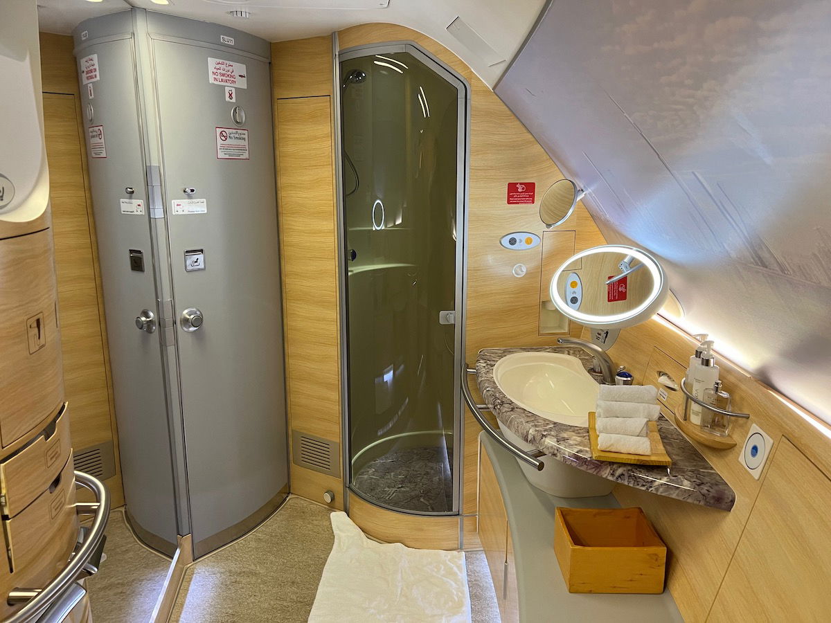 It’s worth mentioning that there’s one other airline offering inflight showers. Specifically, Abu Dhabi-based Etihad also has an onboard shower in its A380 first class. While this is also a great experience, it’s not in the same league as Emirates — there’s only one shower suite, there’s no dedicated shower attendant, and the shower is also much smaller. So while it’s still a treat, it’s not as exciting as what you’ll find on Emirates.
