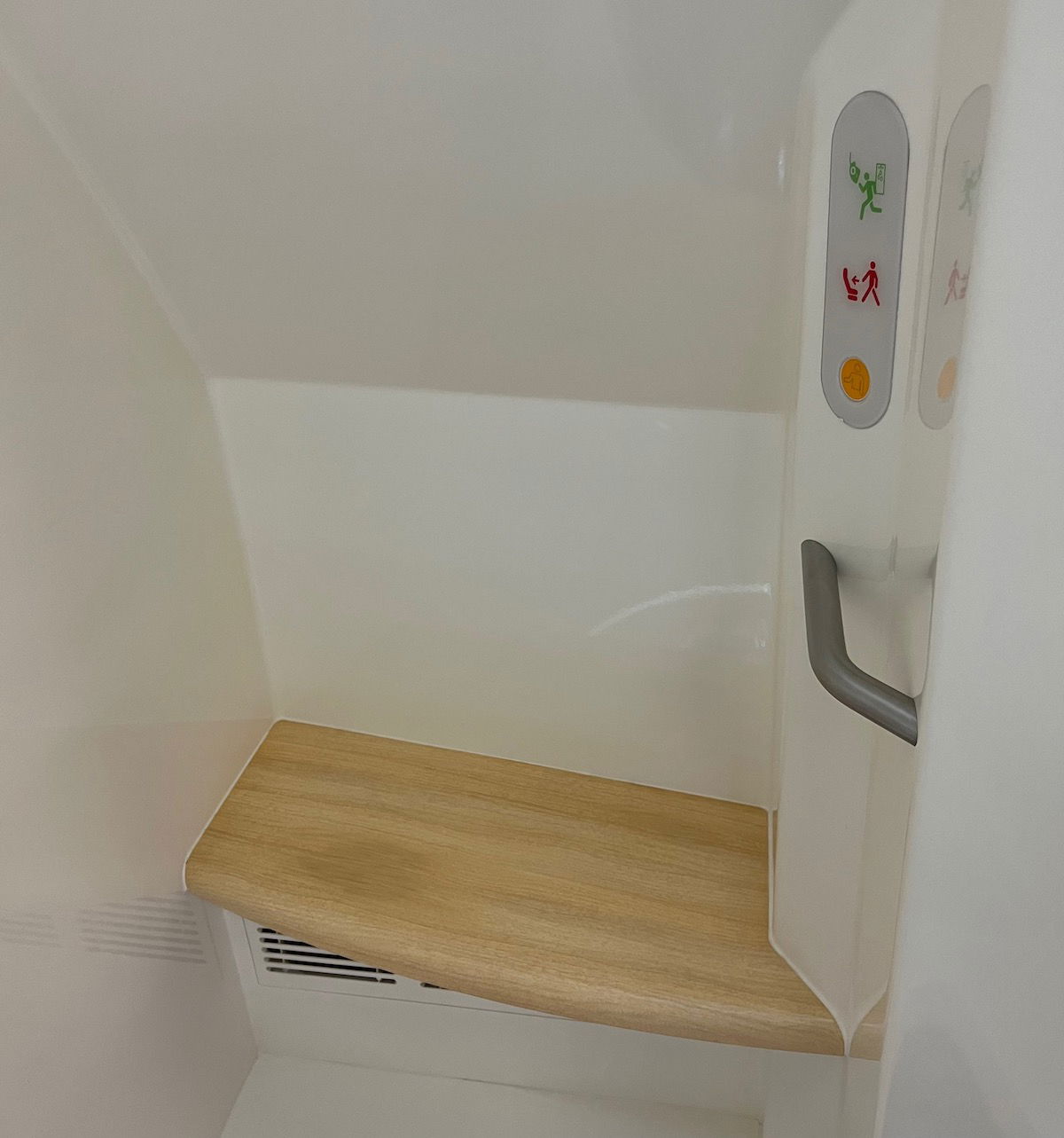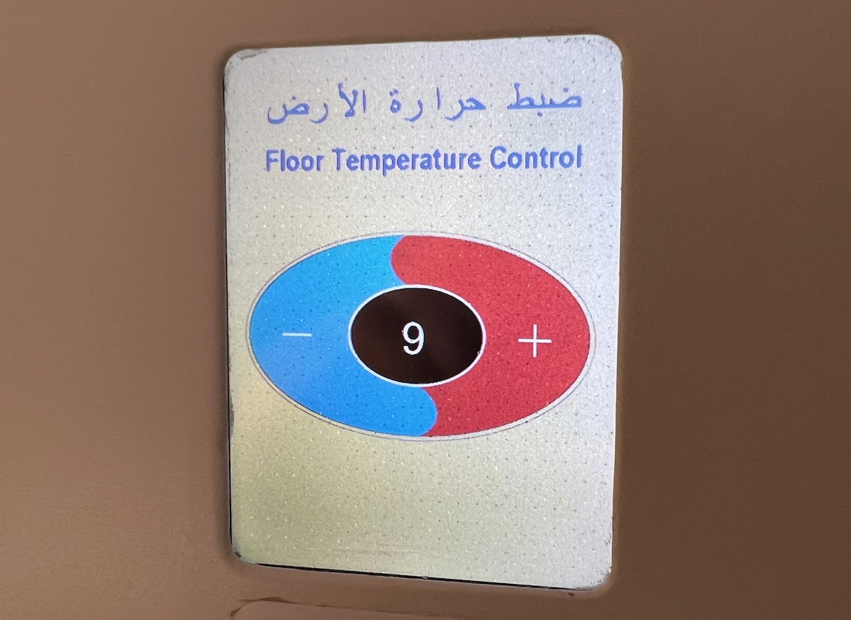 Like any civilized airplane bathroom, there are customizable heated floors, so you can adjust the temperature. 😉