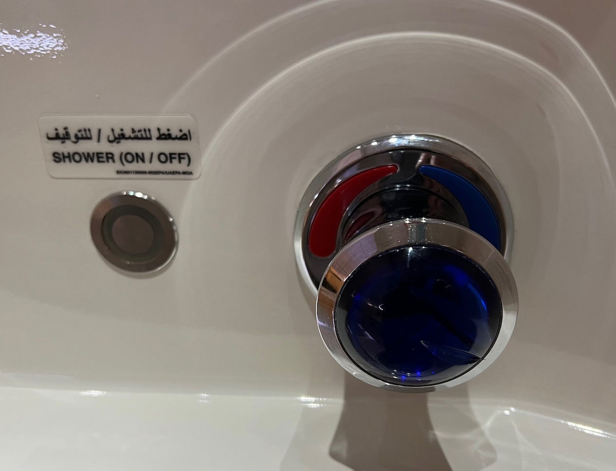 The Emirates shower has good water pressure, much better than you’d expect on a plane, in my opinion. Furthermore, the temperature adjusts quickly — if you select hot water, the water will be hot almost immediately.