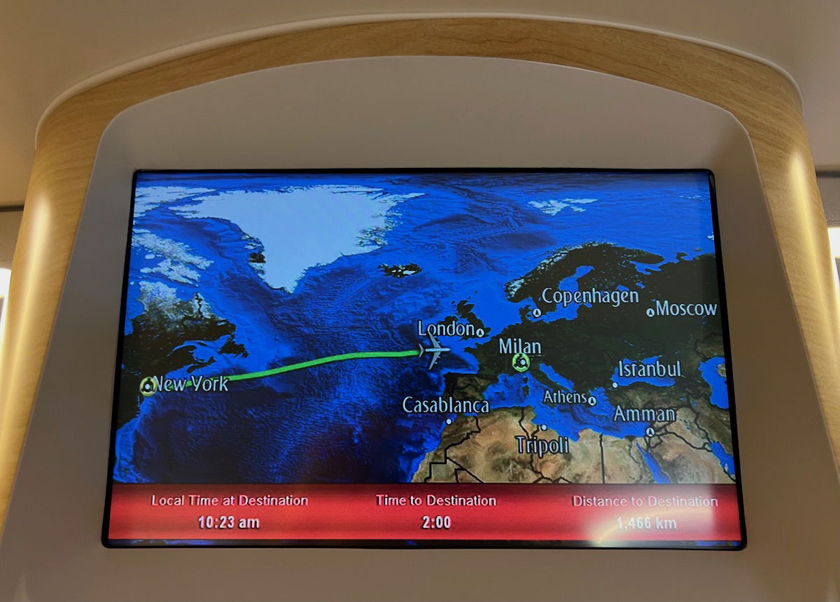 There’s a TV screen in the shower spa with the map feature, so you can keep track of the progress of your flight.