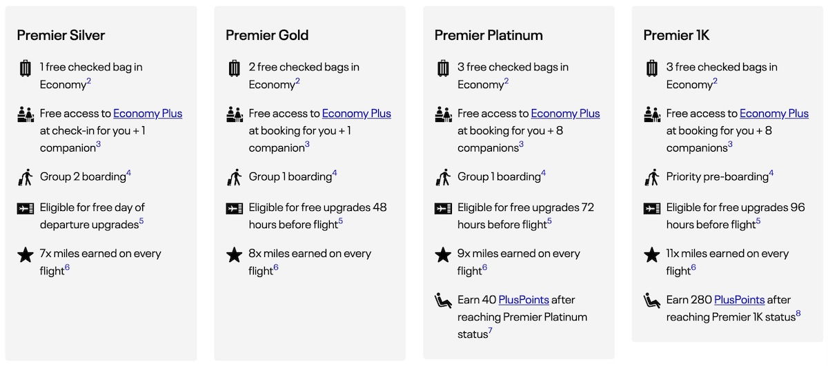 What are United Airlines MileagePlus status perks like?