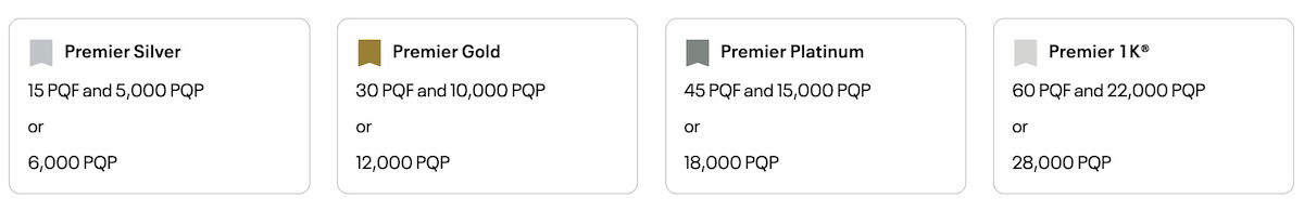 - Premier 1K requires 20 PQF and 7,500 PQP