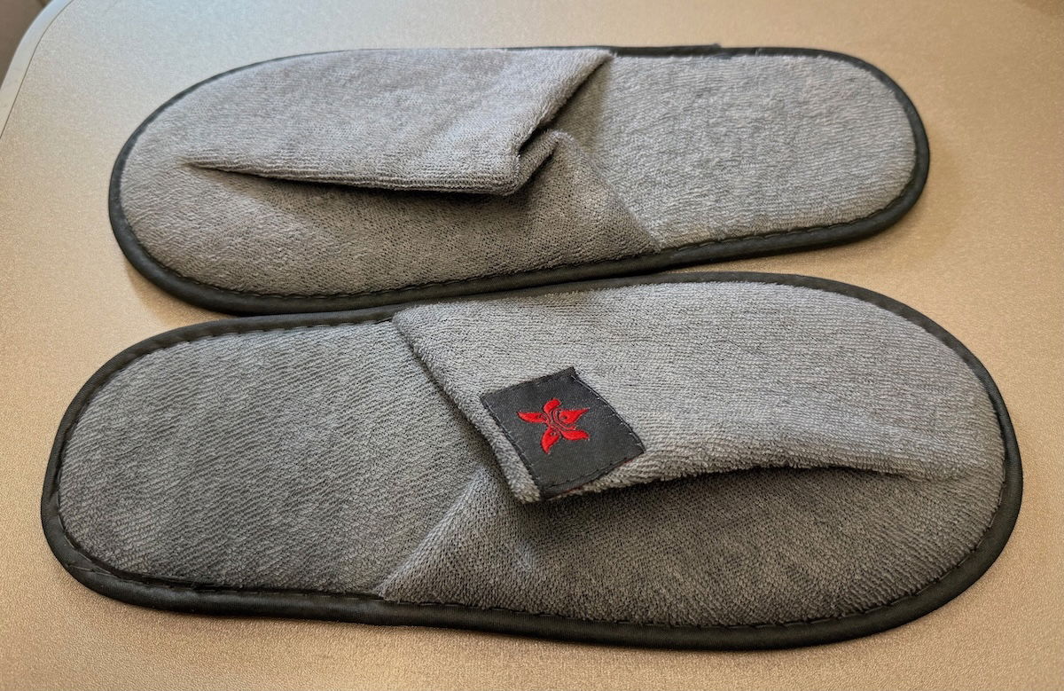 In terms of amenities, each business class passenger received a pillow and blanket, plus a pair of slippers, which is nice for a flight of this length.
