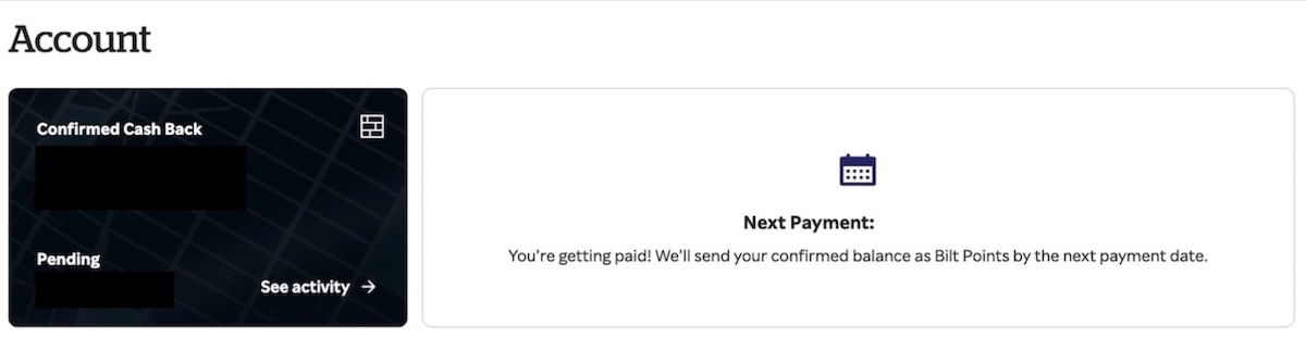 Once you’ve successfully linked your accounts, you can log into your Rakuten account and go to the “Account” section, and you’ll see that the account shows that you’ll be earning Bilt points as your reward. All rewards amounts show in cash, but are then converted into Bilt points at the above rate.