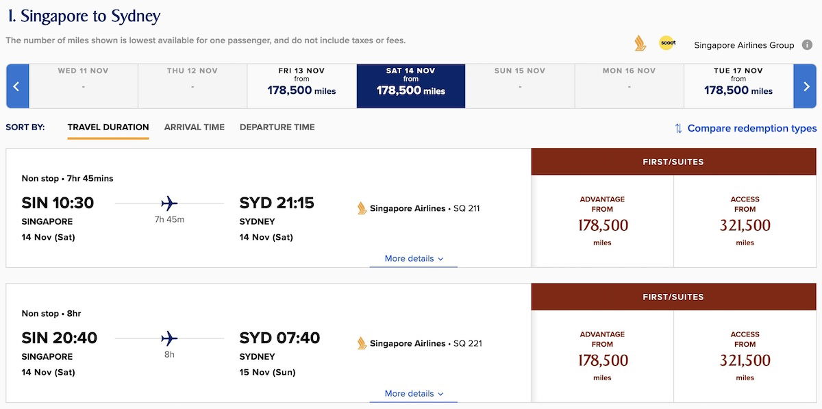 If you want to redeem for Singapore Airlines Suites and first class, you’ll have to book directly through the KrisFlyer program. Partner airline frequent flyer programs generally won’t have access to this award space.