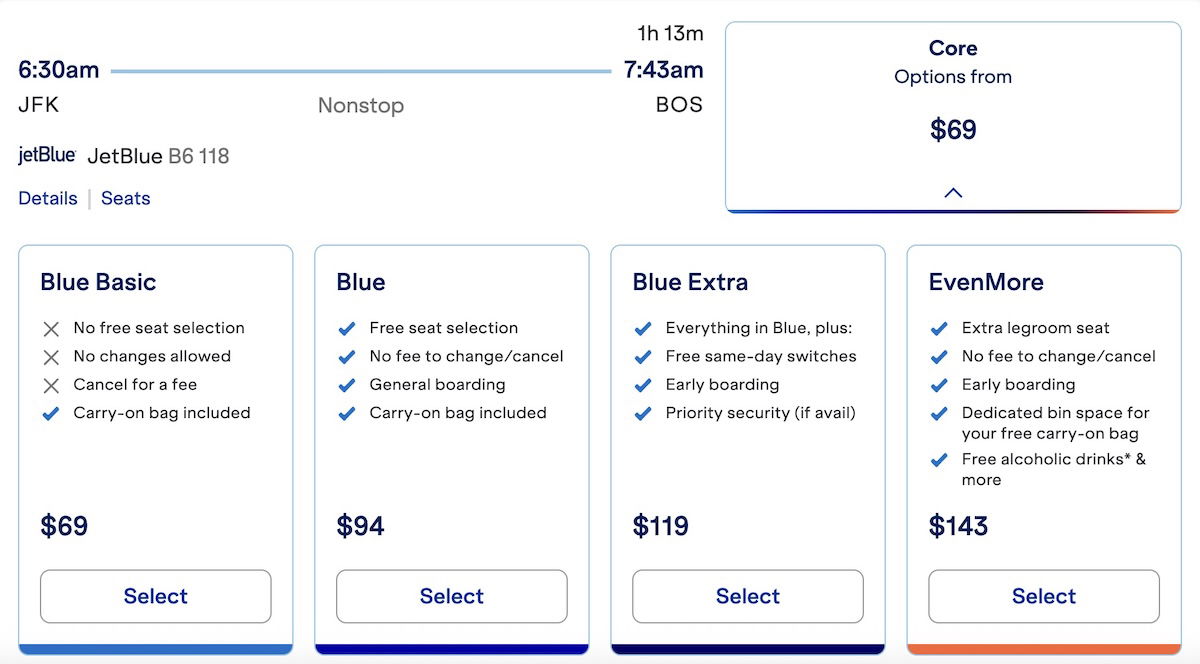 The thing about JetBlue basic economy fares is that it’s easy enough to recreate a standard economy experience. You can buy an EvenMore seat when booked on one of these fares, and then you get priority boarding and more.