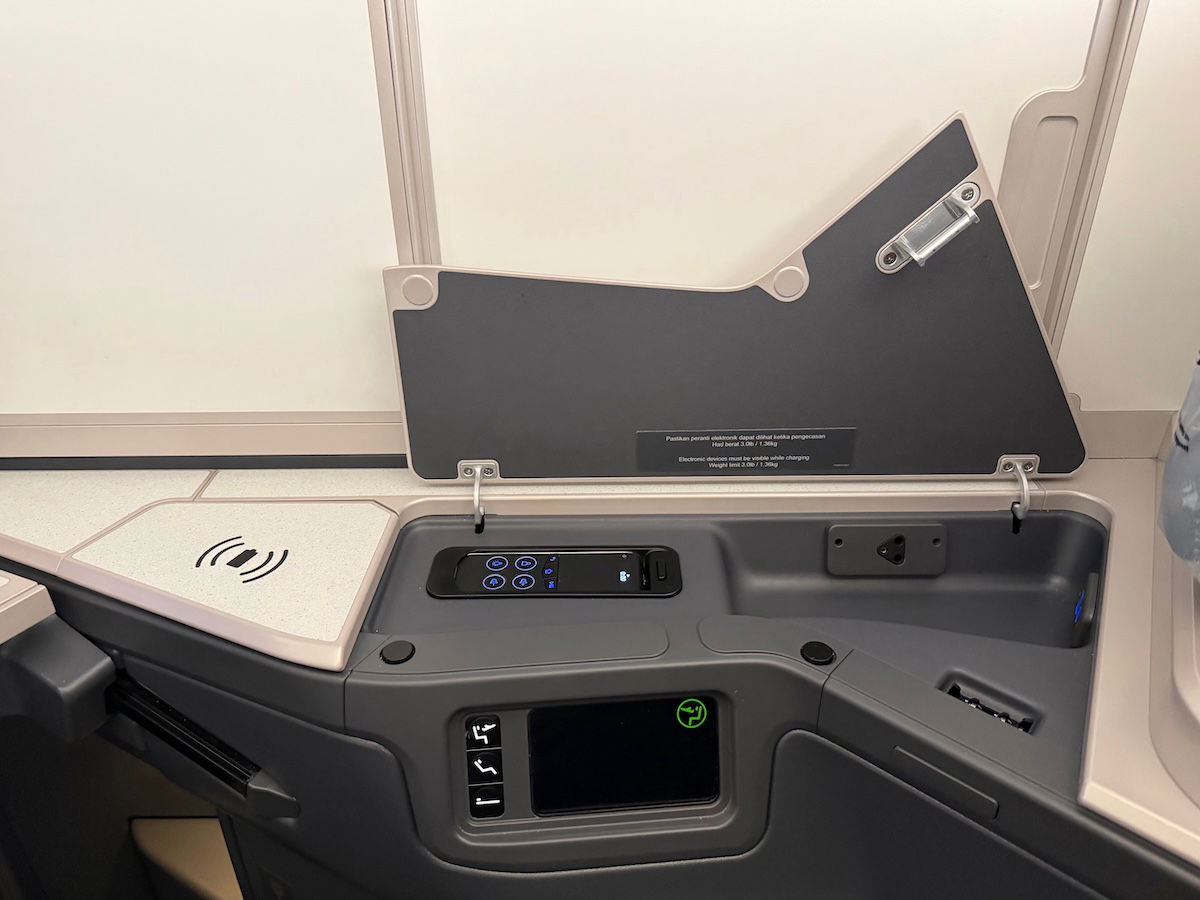 Malaysia Airlines is the global launch customer for the Collins Aerospace Elevation product, which is a new reverse herringbone seat with a door. Honestly, there’s nothing earth shattering about the hard product, but it feels exactly like what you’d expect.