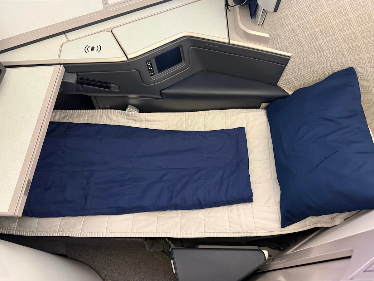 So I’ve gotta say, this felt to me like a very comfortable product, as I sometimes forgot that I wasn’t on the A350. The bedding also helped, with a substantial pillow, a mattress pad, and a cozy duvet.