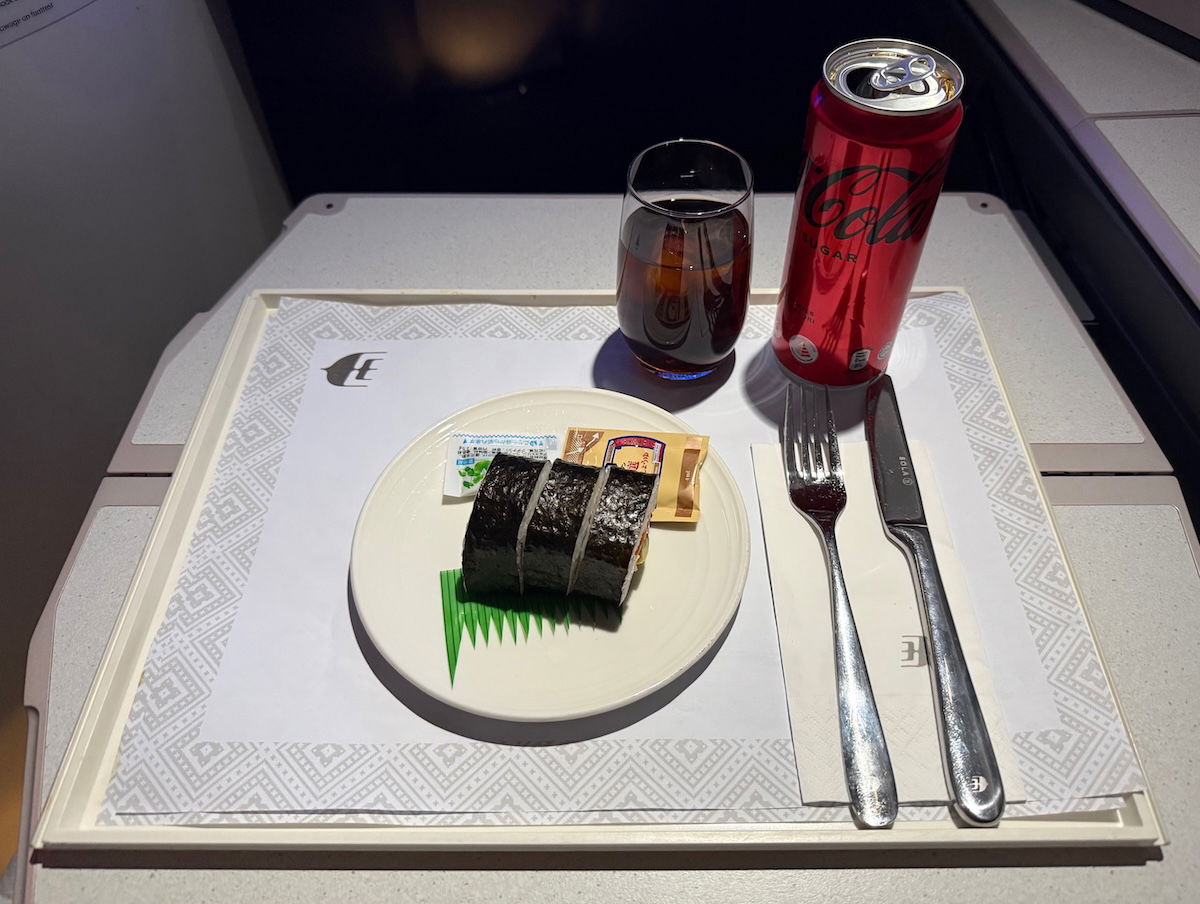 So I went for the other option, which was… California rolls. Erm, that’s the first time I’ve ever eaten California rolls on a flight departing Japan, but…