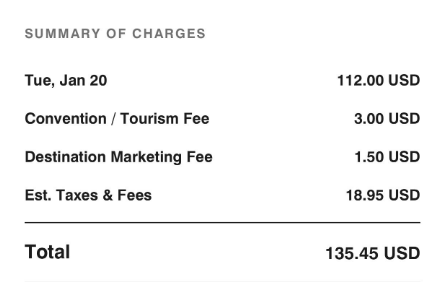 They found that the Fairfield by Marriott Inn & Suites Kansas City Airport was charging a $3 convention center fee (required by law) and a $1.50 destination marketing fee which seemed like something they’d made up as an add-on.