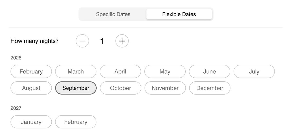 I find Marriott Bonvoy’s calendar feature to be incredibly useful for deciding when it’s a good deal to redeem points. When you search a destination, just select the “Flexible Dates” tab, and then you can choose the month where you want to search availability.