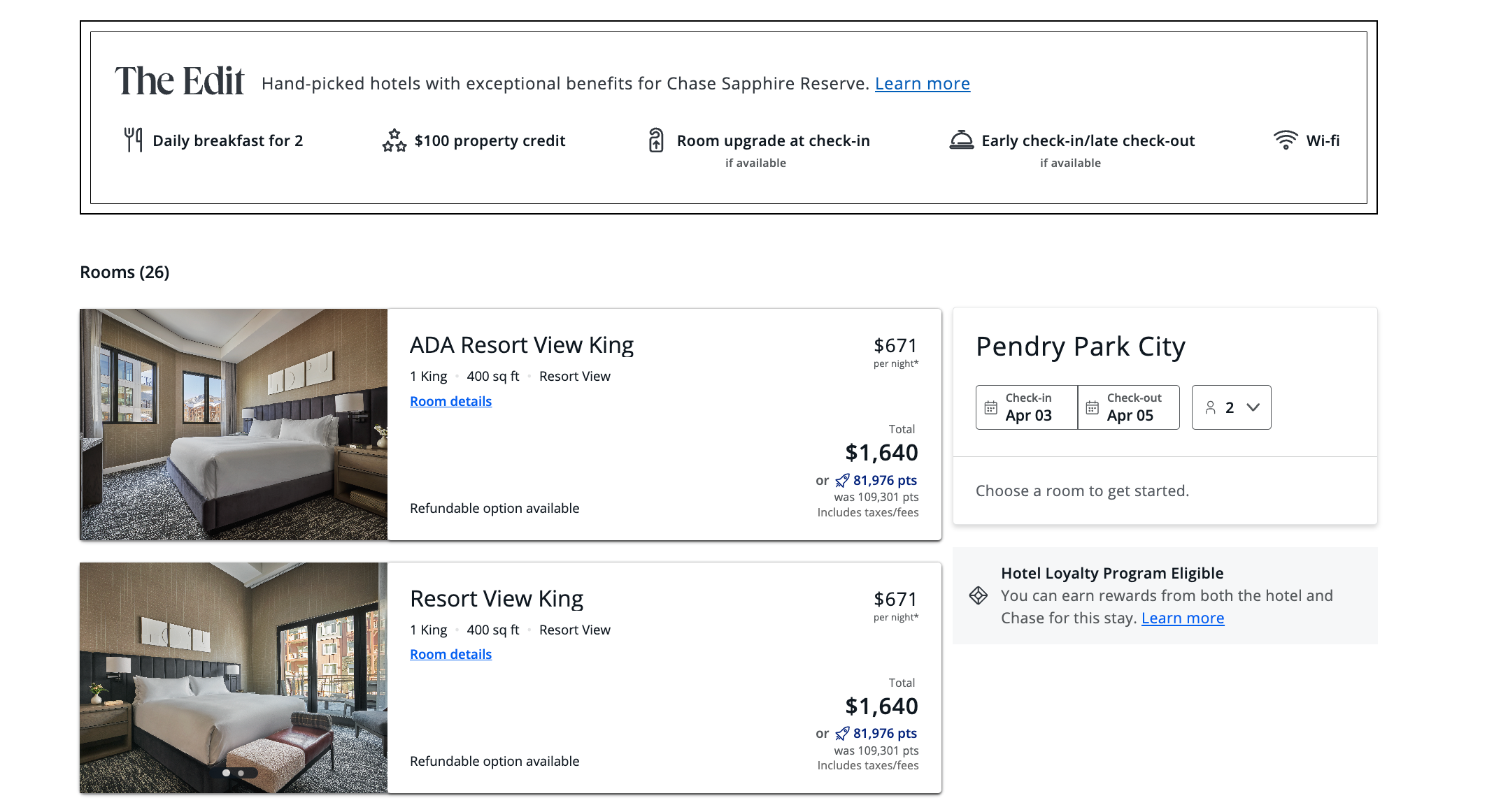 For example, you can select a property eligible for the $250 hotel credit that is also part of The Edit, such as the Pendry Park City in Utah.